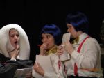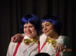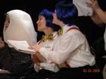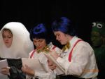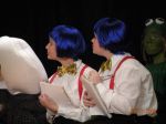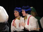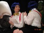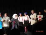 The first 7 are from the jury scene near the end just before Alice decides everything in Wonderland is nonsense. From left to right: Humpty Dumpty, Tweedle Dum, Tweedle Dee, and the Frog Footman. The picture where we are standing in a row is where we are gettin our applause :P. From left to right: March Hare, Knave of Hearts, Humpty Dumpty, Tweedle Dum, Tweedle Dee, (****, what was Kiefer supposed to be? sometimes he was a soldier, somtimes a knight <_<...anyway) and a Card Soldier.
